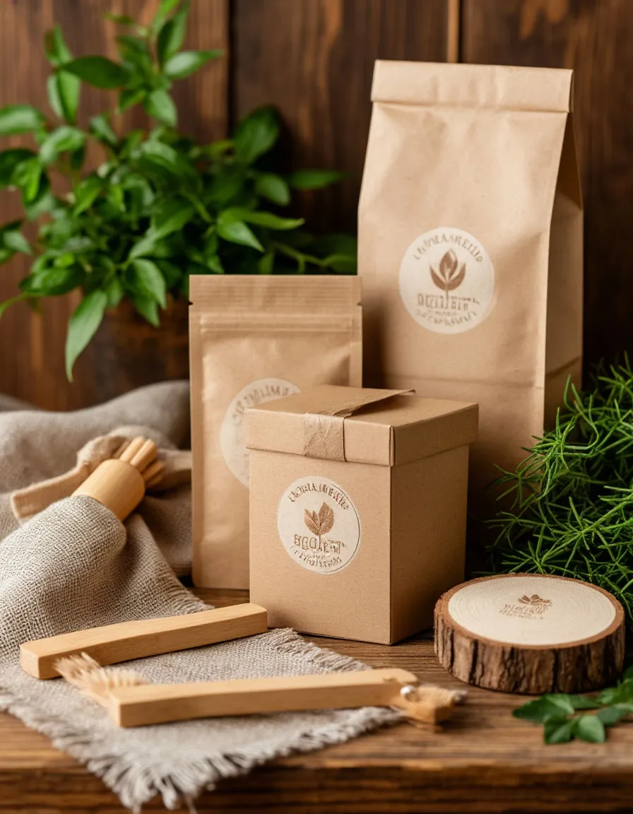 Эко-набор с предметами из переработанных материалов, экологичной косметикой и полезными гаджетами для защиты природы.
